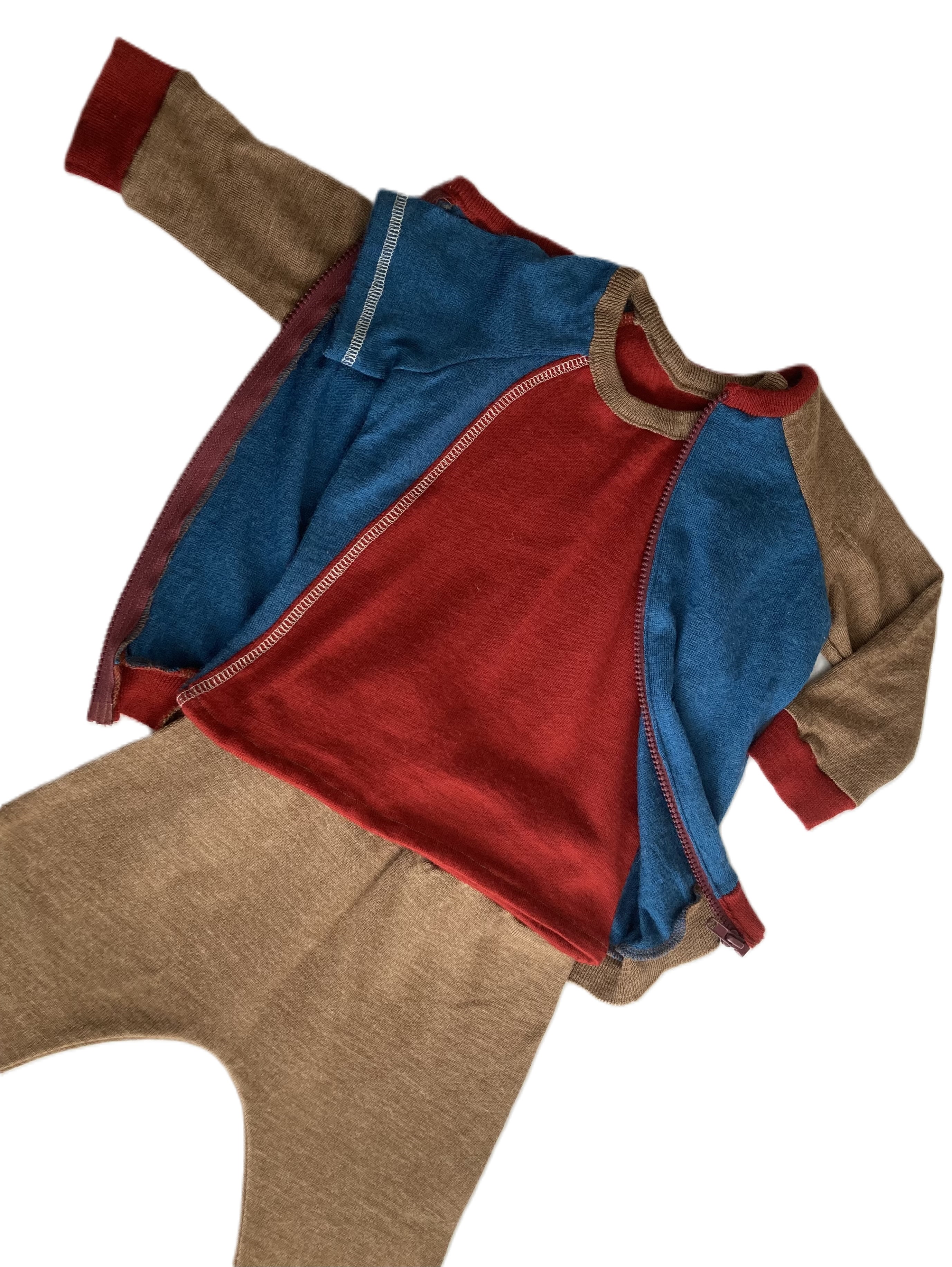 Warstwa bazowa: cienka wełniana bluzka z merino, która dobrze odprowadza wilgoć i jest miękka dla skóry dziecka.