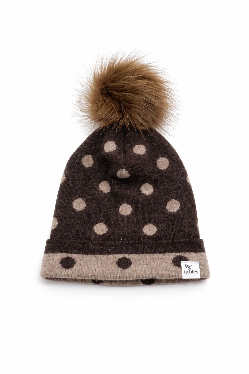 Jednowarstwowa brązowa wełniana czapka z pomponem