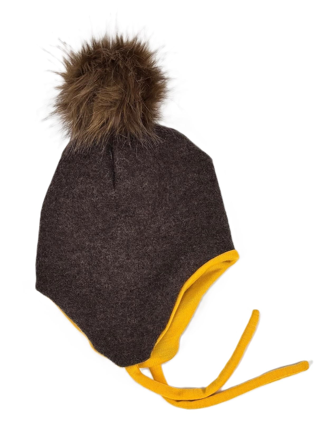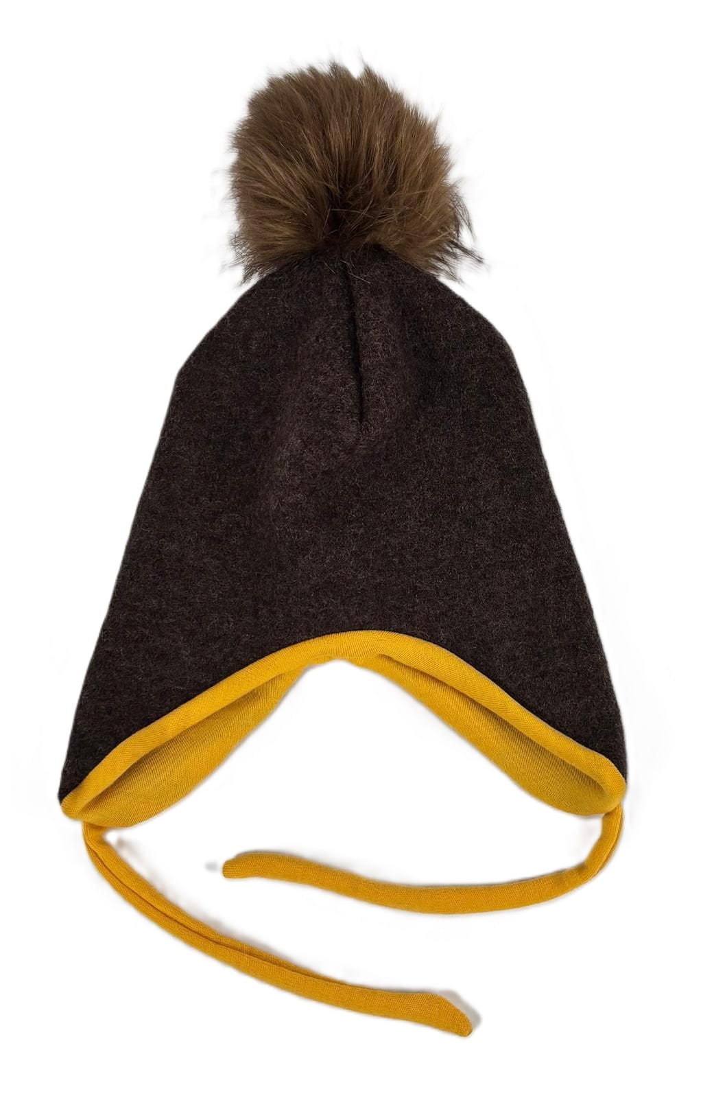 Oferujemy dwuwarstwową, delikatną czapeczkę wełnianą w kolorze brązowym, uszytą w 100% z naturalnych materiałów. Czapeczka została zaprojektowana z myślą o komforcie dziecka, gwarantując skuteczną ochronę przed chłodem oraz dopasowanie dzięki troczkom. Wykorzystanie używanej wełny zapewnia unikalny, ekologiczny produkt, który wpisuje się w ideę zrównoważonej mody. Rozmiar 86/92 cm.