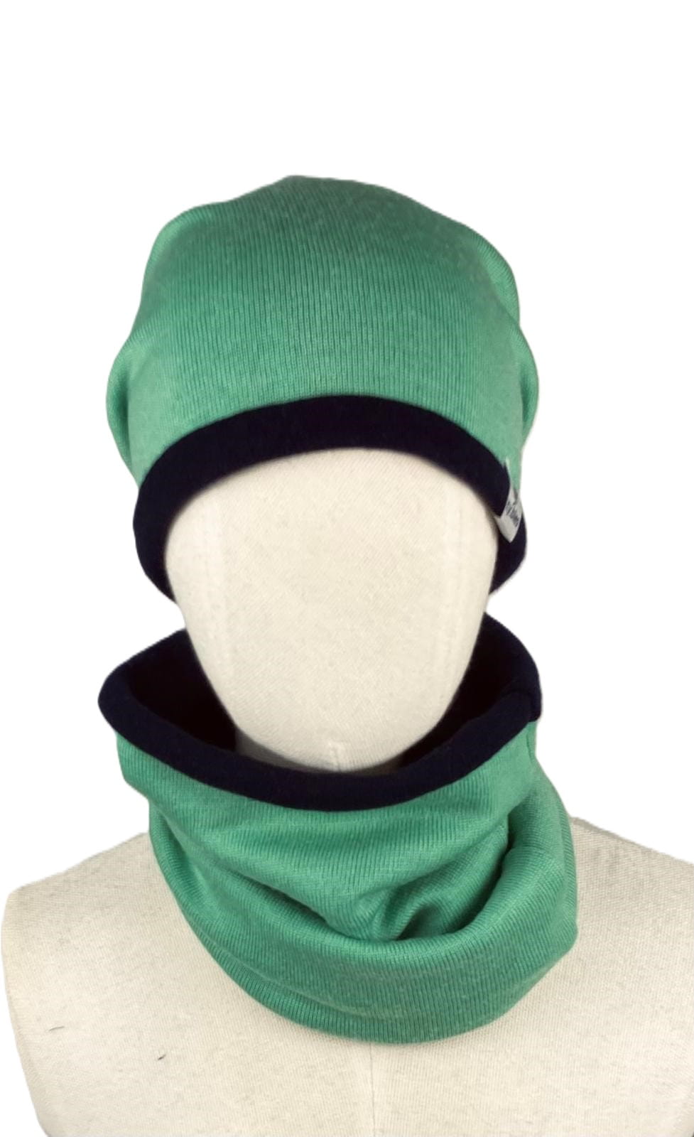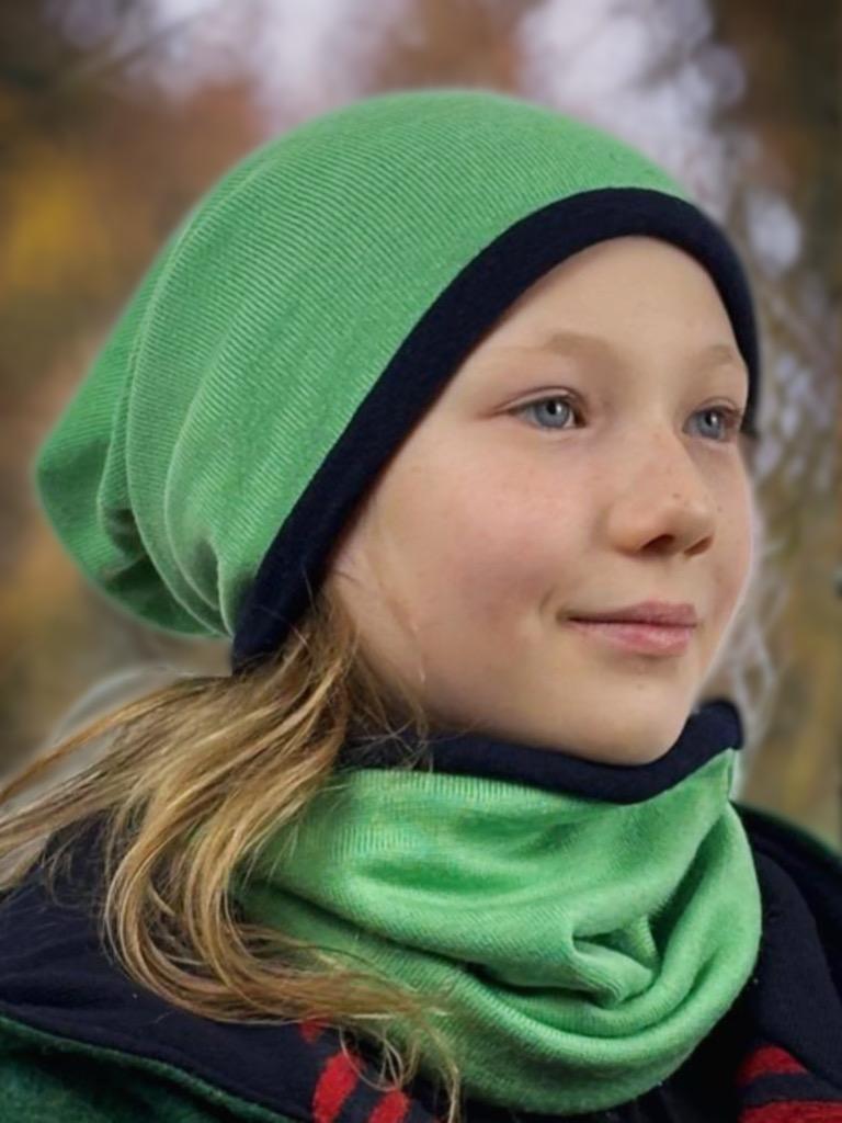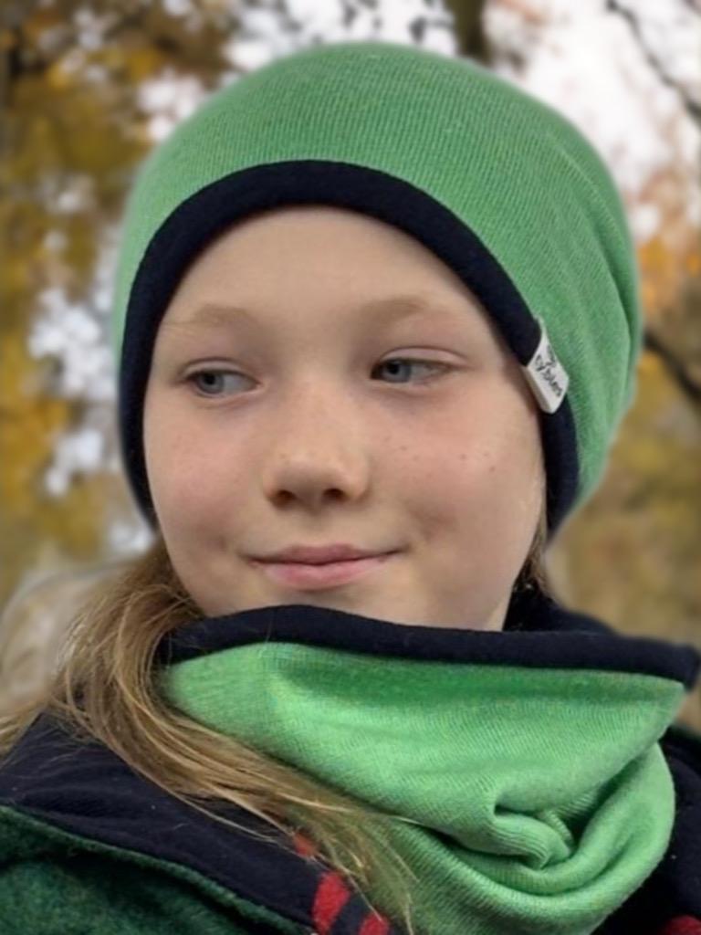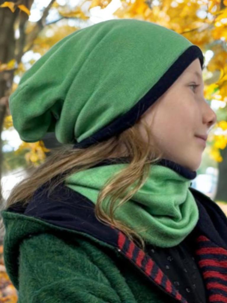 Stylowy zestaw, w skład zestawu wchodzi dwuwarstwowa zielona czapka wełniana plus komin, uszyty w 100% z najwyższej jakości wełny pochodzącej z recyklingu. Materiał pochodzi z używanych swetrów, które są starannie prane i przygotowywane przed szyciem, co pozwala na nadanie im nowego życia i ograniczenie odpadów. Wszystkie nasze produkty są szyte w Polsce, z troską o najwyższą jakość i dbałością o środowisko.