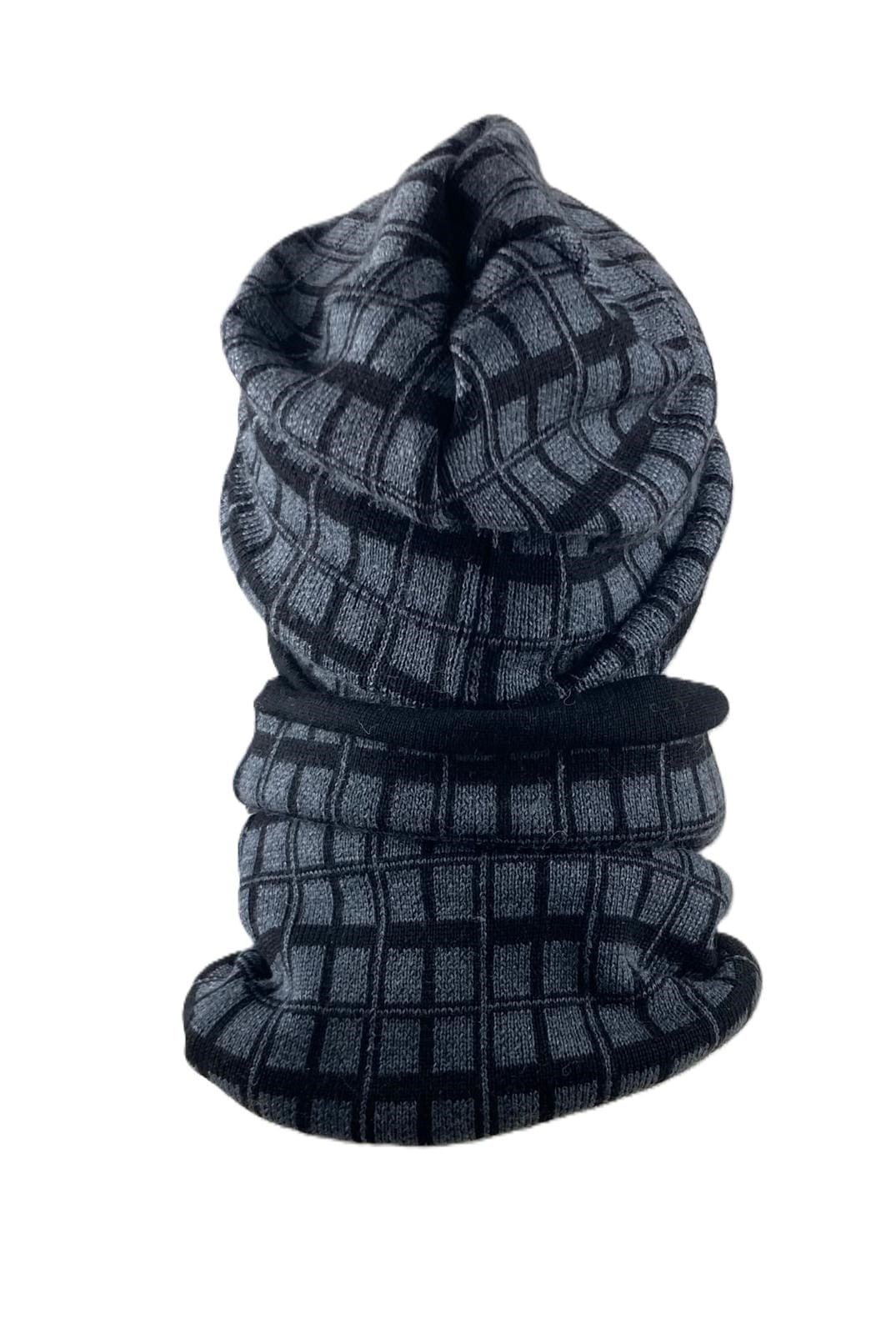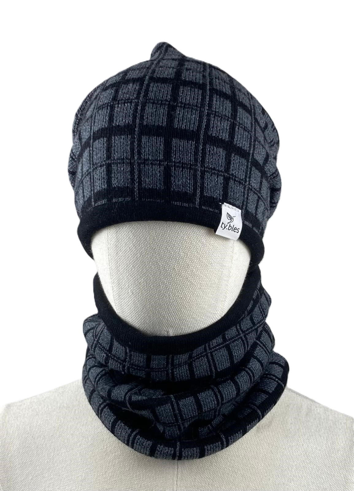 Stylowy zestaw, w skład zestawu wchodzi dwuwarstwowa szaro czarna czapka wełniana plus komin, uszyty w 100% z najwyższej jakości wełny pochodzącej z recyklingu. Materiał pochodzi z używanych swetrów, które są starannie prane i przygotowywane przed szyciem, co pozwala na nadanie im nowego życia i ograniczenie odpadów. Wszystkie nasze produkty są szyte w Polsce, z troską o najwyższą jakość i dbałością o środowisko.