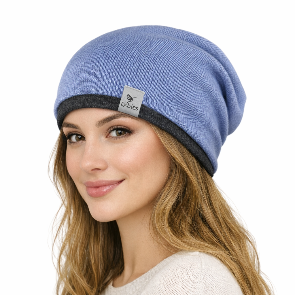 Czapka wełniana w błękitnym kolorze, uszyta w 100% z najwyższej jakości wełny pochodzącej z recyklingu. Materiał pochodzi z używanych swetrów, które są starannie prane i przygotowywane przed szyciem, co pozwala na nadanie im nowego życia i ograniczenie odpadów. Wszystkie nasze produkty są szyte w Polsce, z troską o najwyższą jakość i dbałością o środowisko.