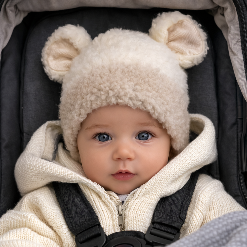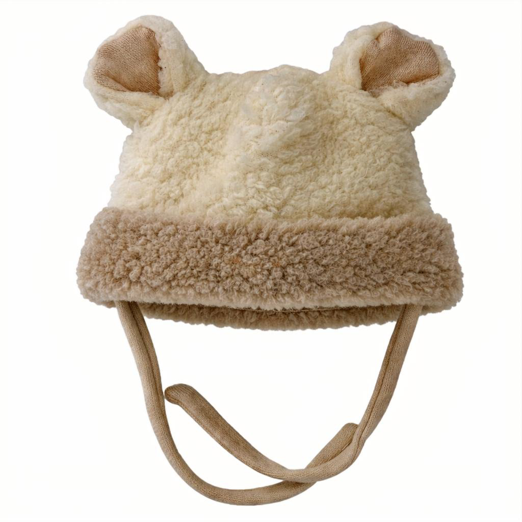Czapka wiązana 50/56 cm wełna 100% wool miś ciepła