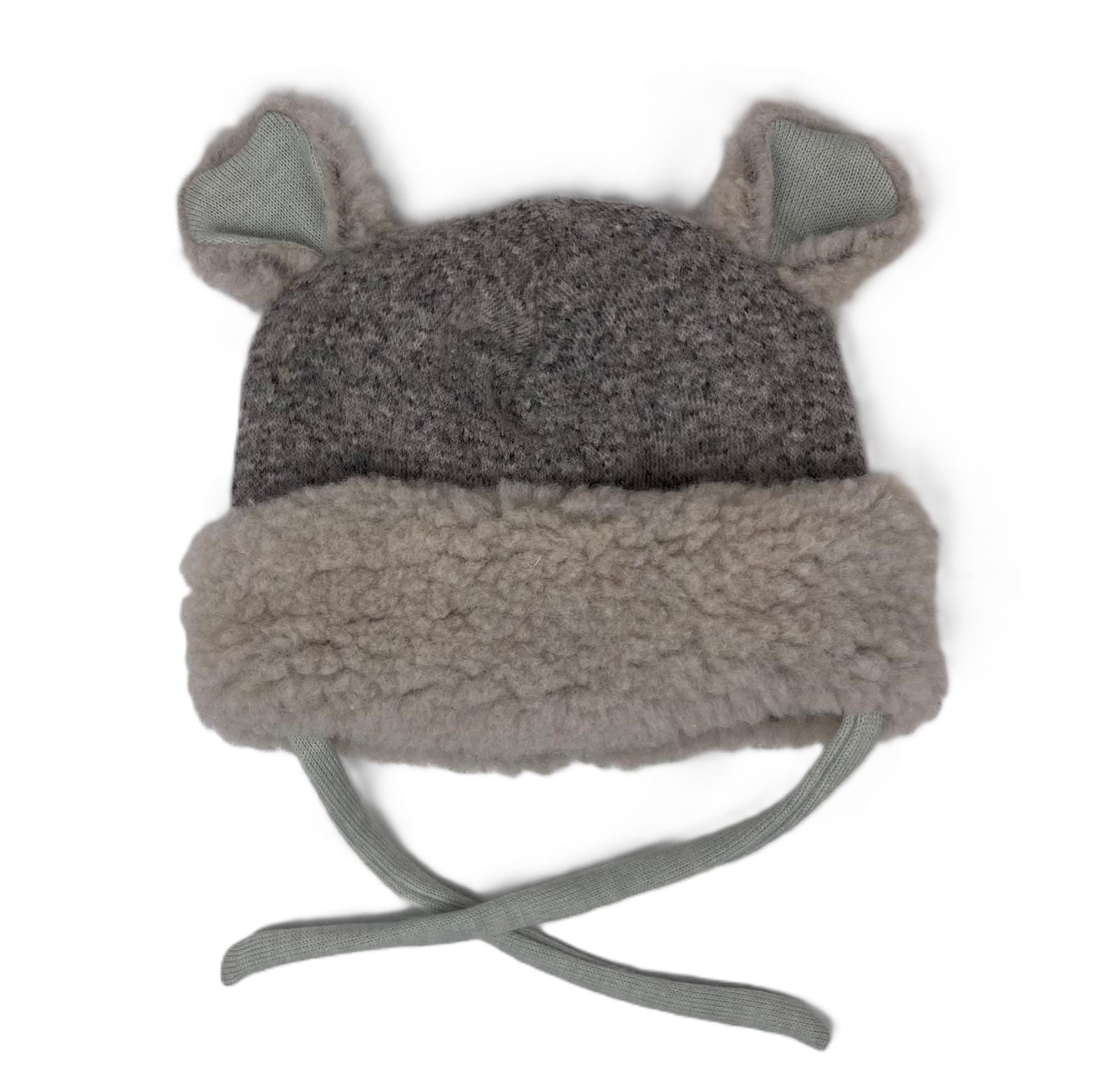 Czapka wiązana 50/56 cm wełna 100% wool miś ciepła