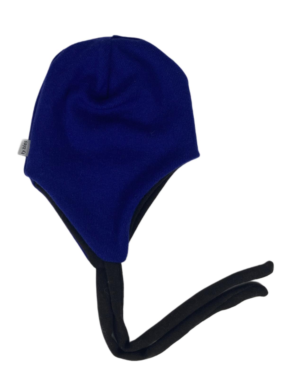 Oferujemy dwuwarstwową, delikatną czapeczkę wełnianą uszytą w duchu zero waste w kolorze niebieskim, uszytą w 100% z naturalnych materiałów pochodzących z recyklingu. Czapeczka została zaprojektowana z myślą o komforcie dziecka, gwarantując skuteczną ochronę przed chłodem oraz dopasowanie dzięki troczkom. Wykorzystanie używanej wełny zapewnia unikalny, ekologiczny produkt, który wpisuje się w ideę zrównoważonej mody. Rozmiar 62/68 cm. Na zewnatrz kolor kobaltowy środek brązowy