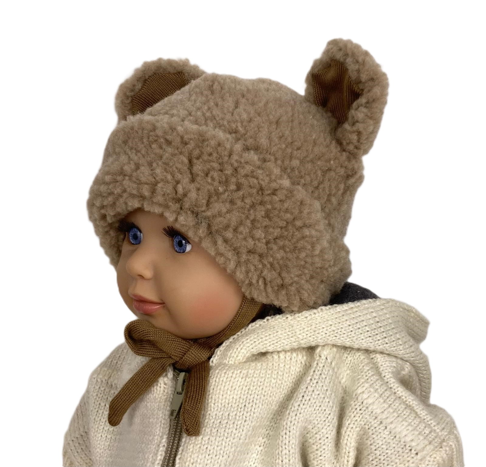 Czapka wiązana 74/80 cm wełna 100% wool miś ciepła