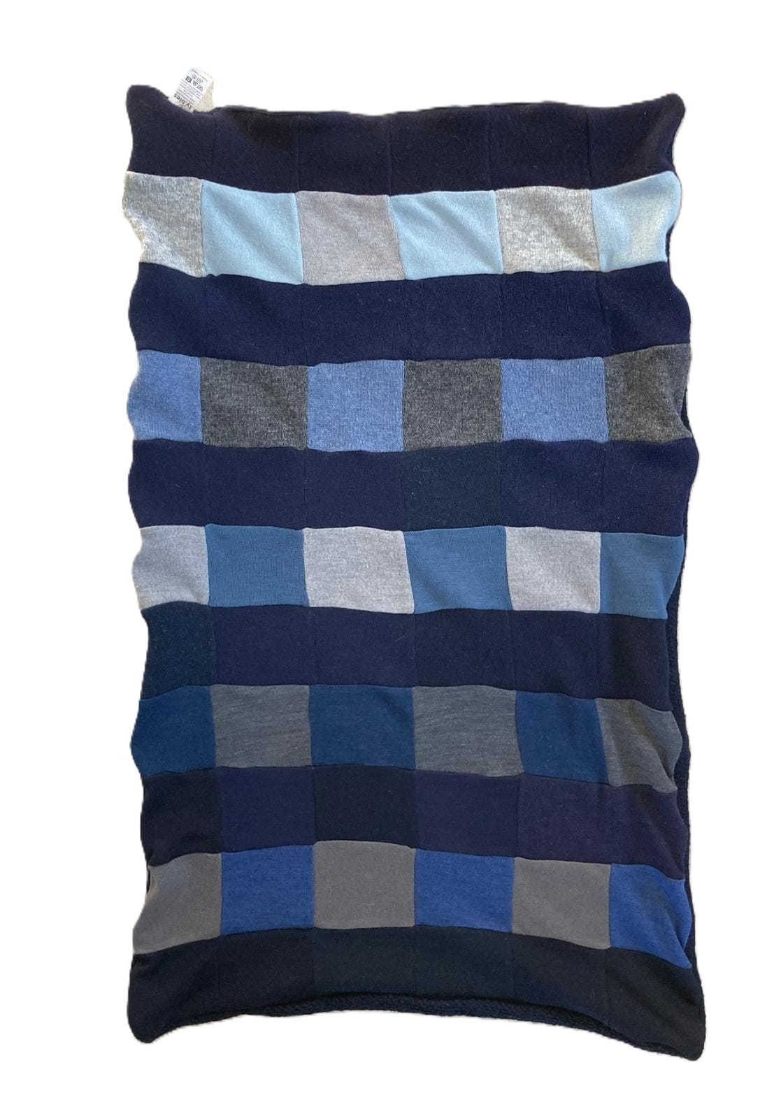 Ciepły, dwuwarstwowy, ręcznie wykonany koc z naturalnej wełny, stworzony z różnorodnych materiałów, które pochodzą z odzyskanych swetrów. Każdy kwadrat patchworku został starannie dobrany, aby stworzyć harmonijną, kolorową całość.