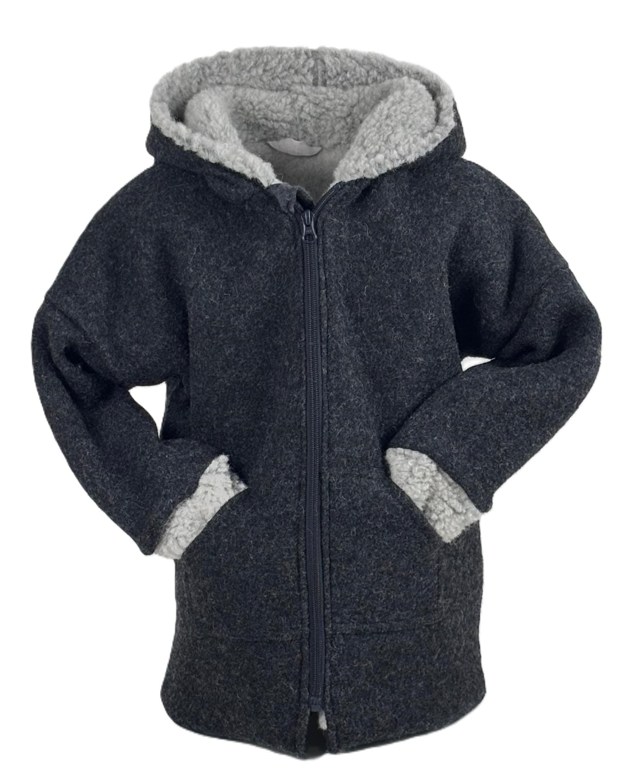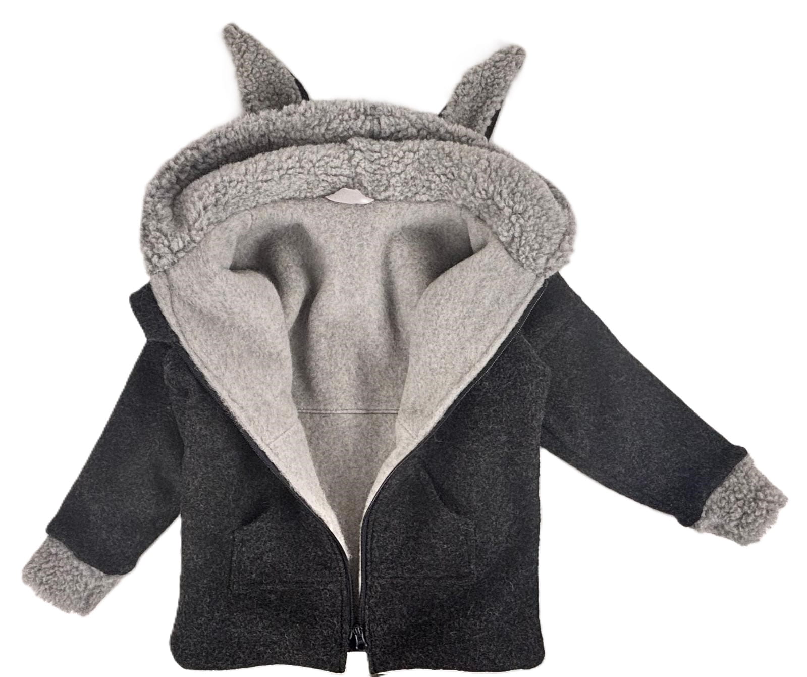 Warstwa zewnętrzna: 100% wełna parzona w kolorze ciemnoszarym