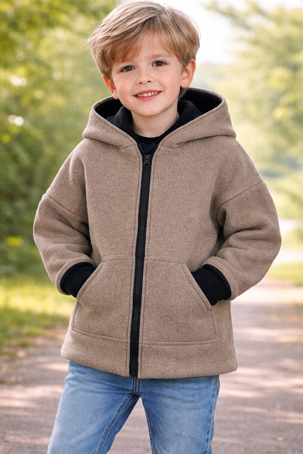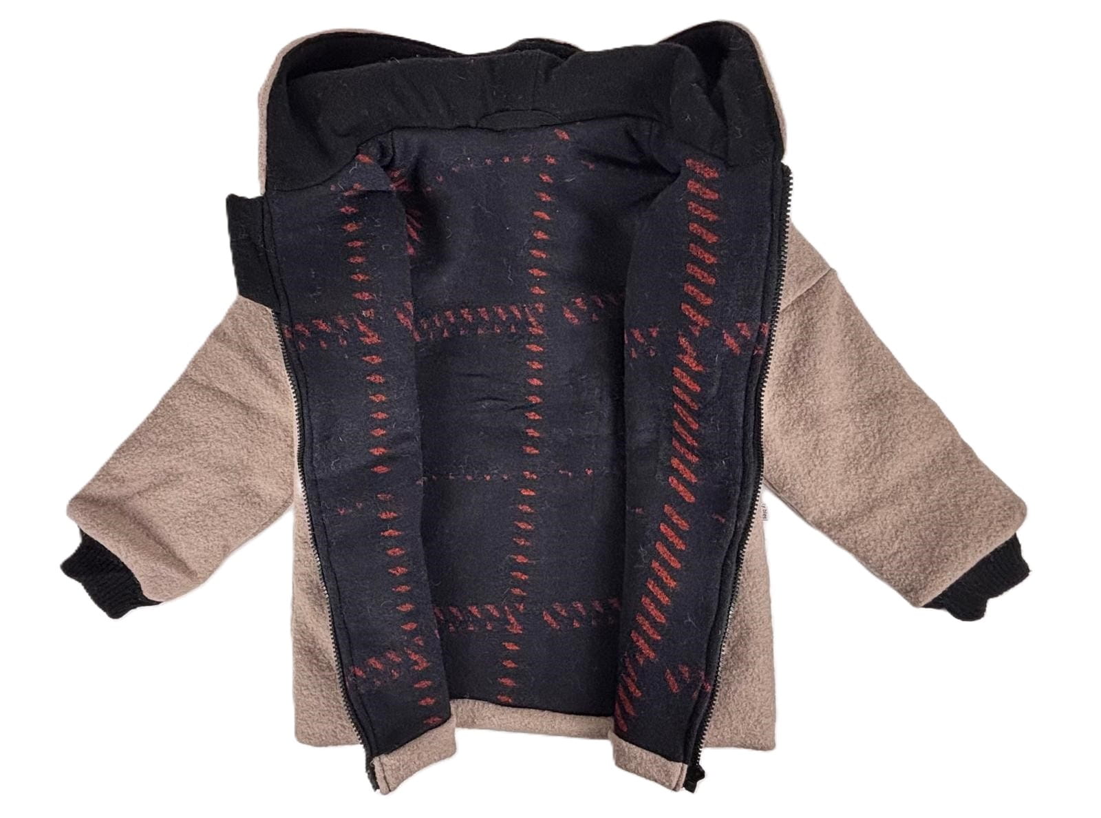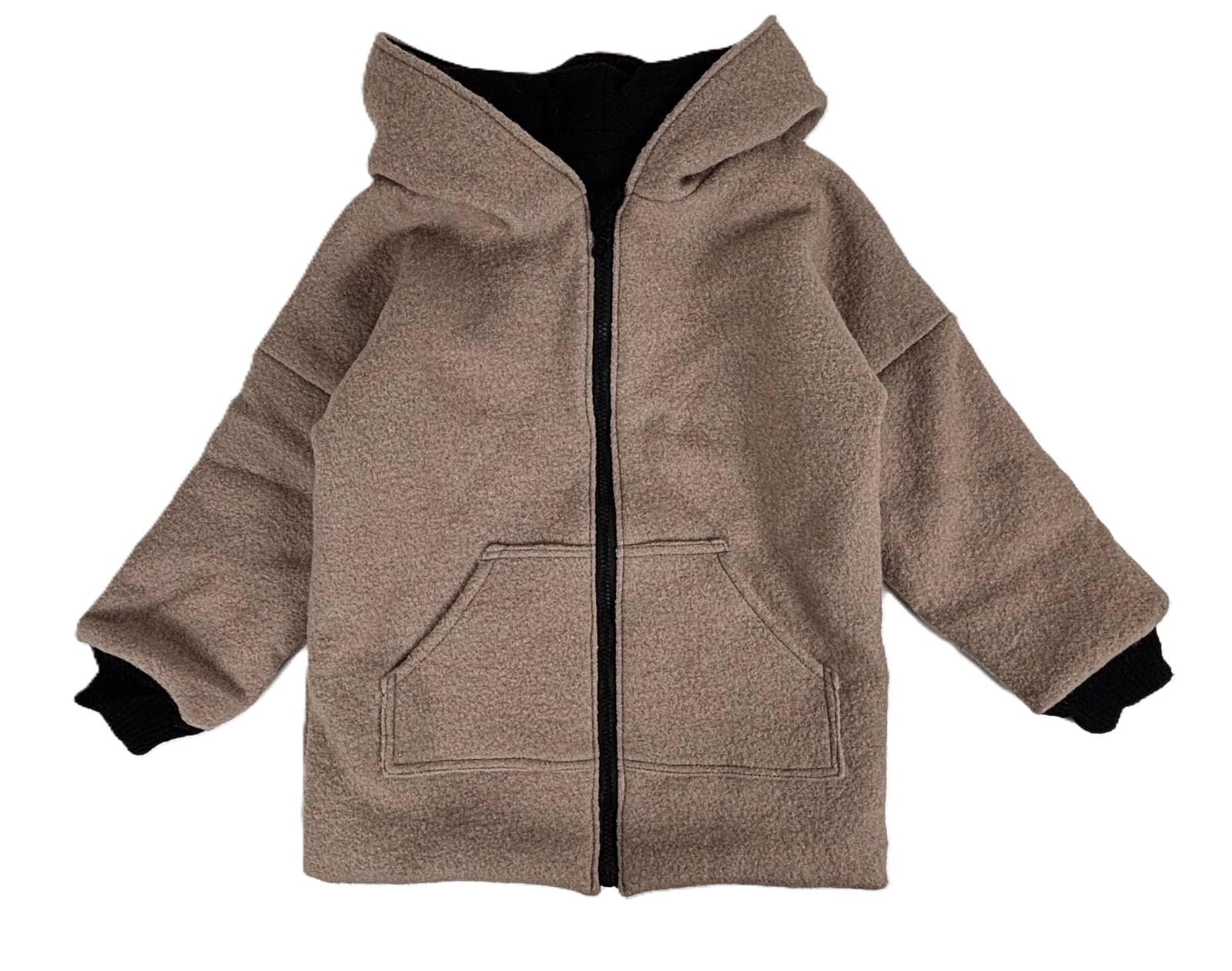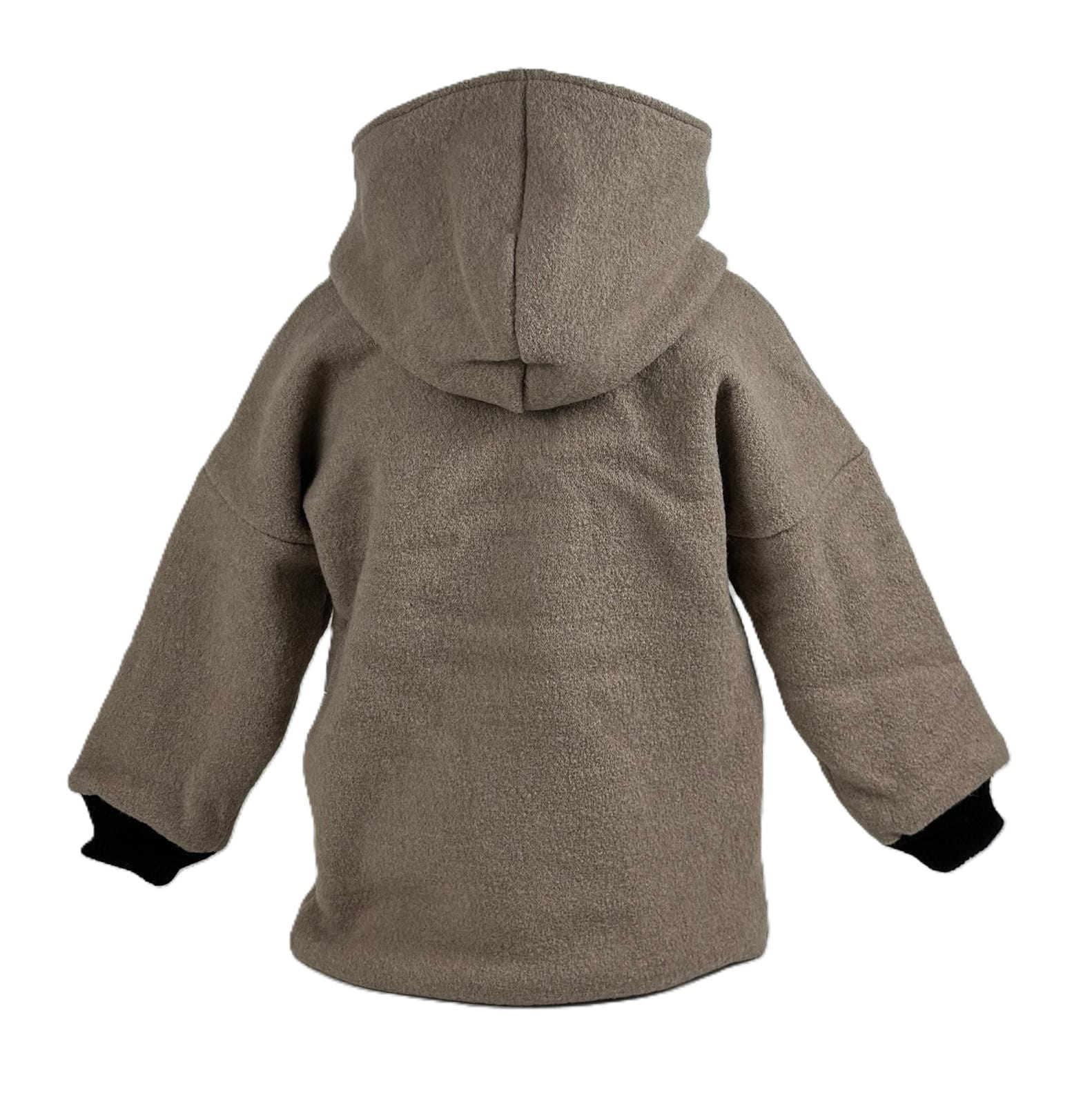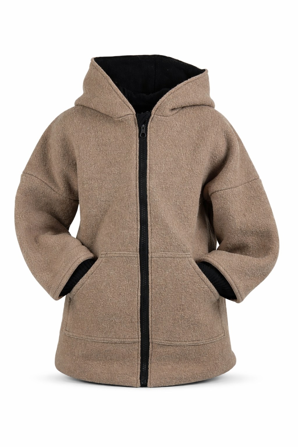 Dwuwarstwowa kurtka wełniana z kapturem w rozmiarze 122 cm, która idealnie łączy styl, komfort.