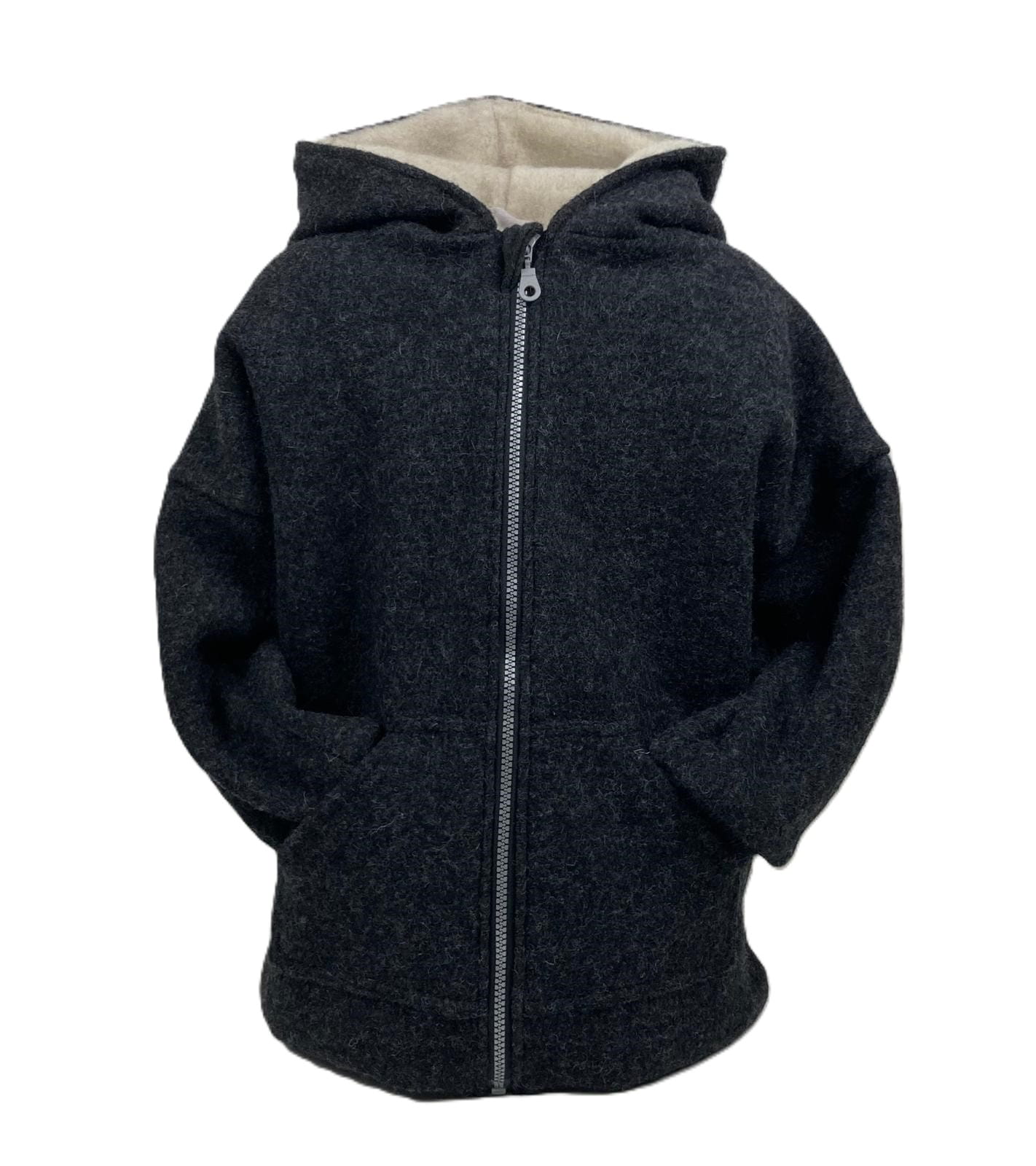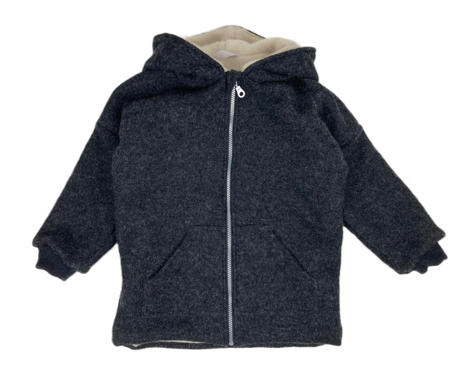 Dwuwarstwowa kurtka wełniana z kapturem w rozmiarze 122 cm, która idealnie łączy styl, komfort.