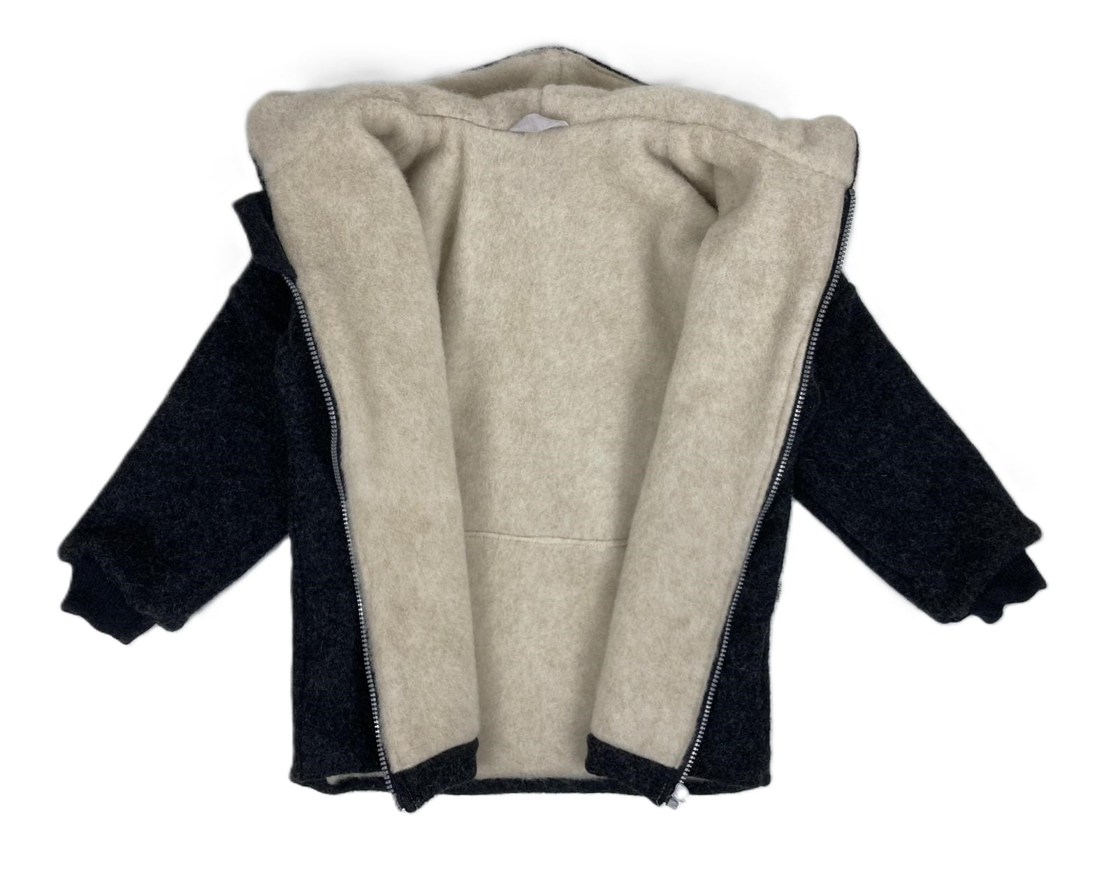 Wnętrze kurtki wyłożone jest miękką i delikatną wełna premmium