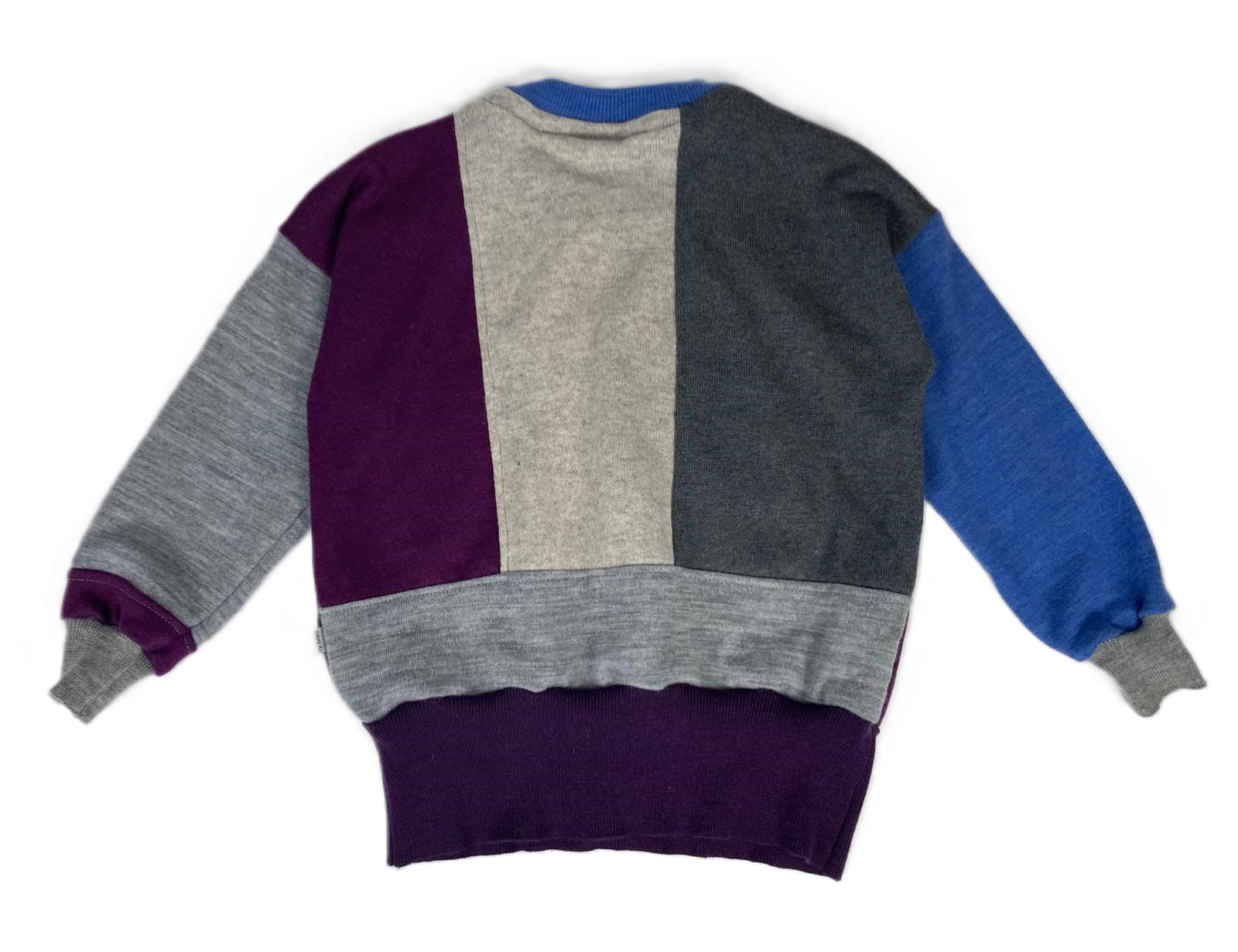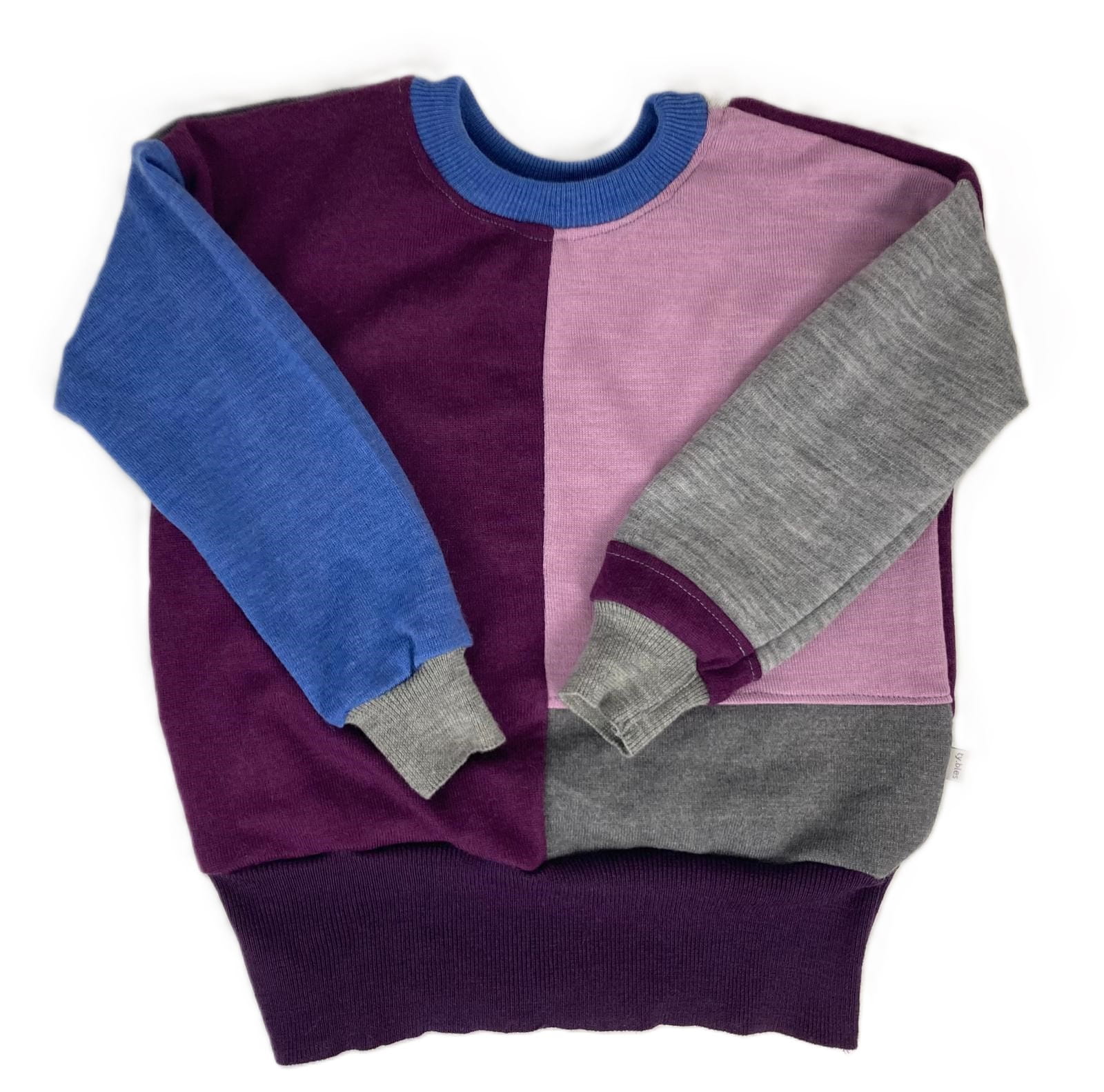 Unikatowy naturalny sweterek / bluza dla dzieci wykonany w duchu zero waste i zrównoważonej mody! Uszyty z wysokiej jakości używanych swetrów z wełny merino, zapewnia ciepło i komfort noszenia.
