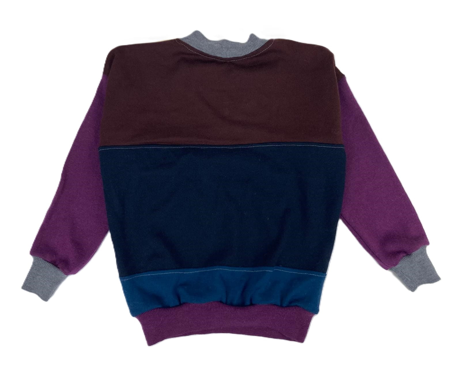 Unikatowy naturalny sweterek / bluza dla dzieci wykonany w duchu zero waste i zrównoważonej mody! Uszyty z wysokiej jakości używanych swetrów z wełny merino, zapewnia ciepło i komfort noszenia.