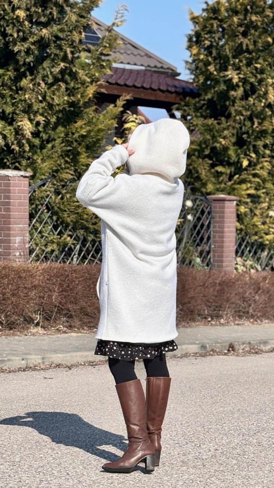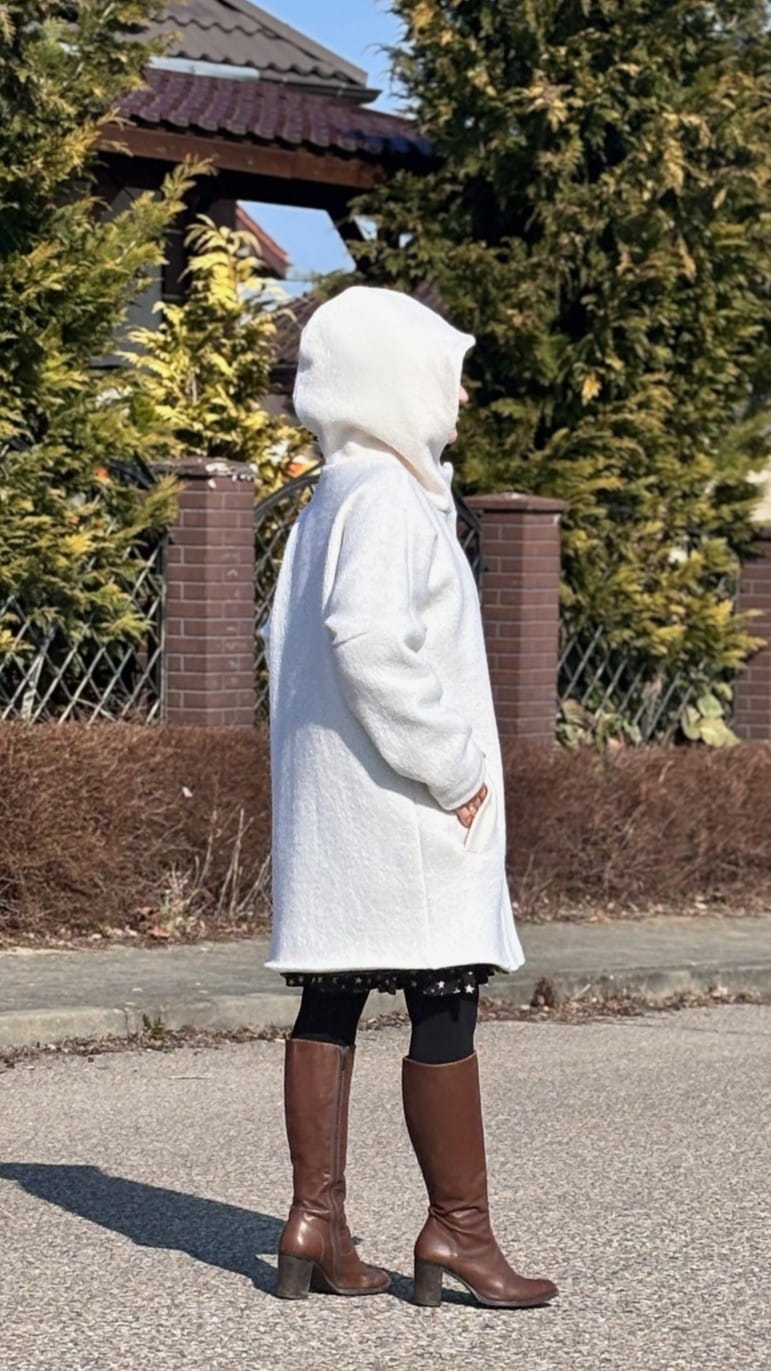 Naturalny damski płaszcz 36 kaptur 100% wełna parzona wool merino