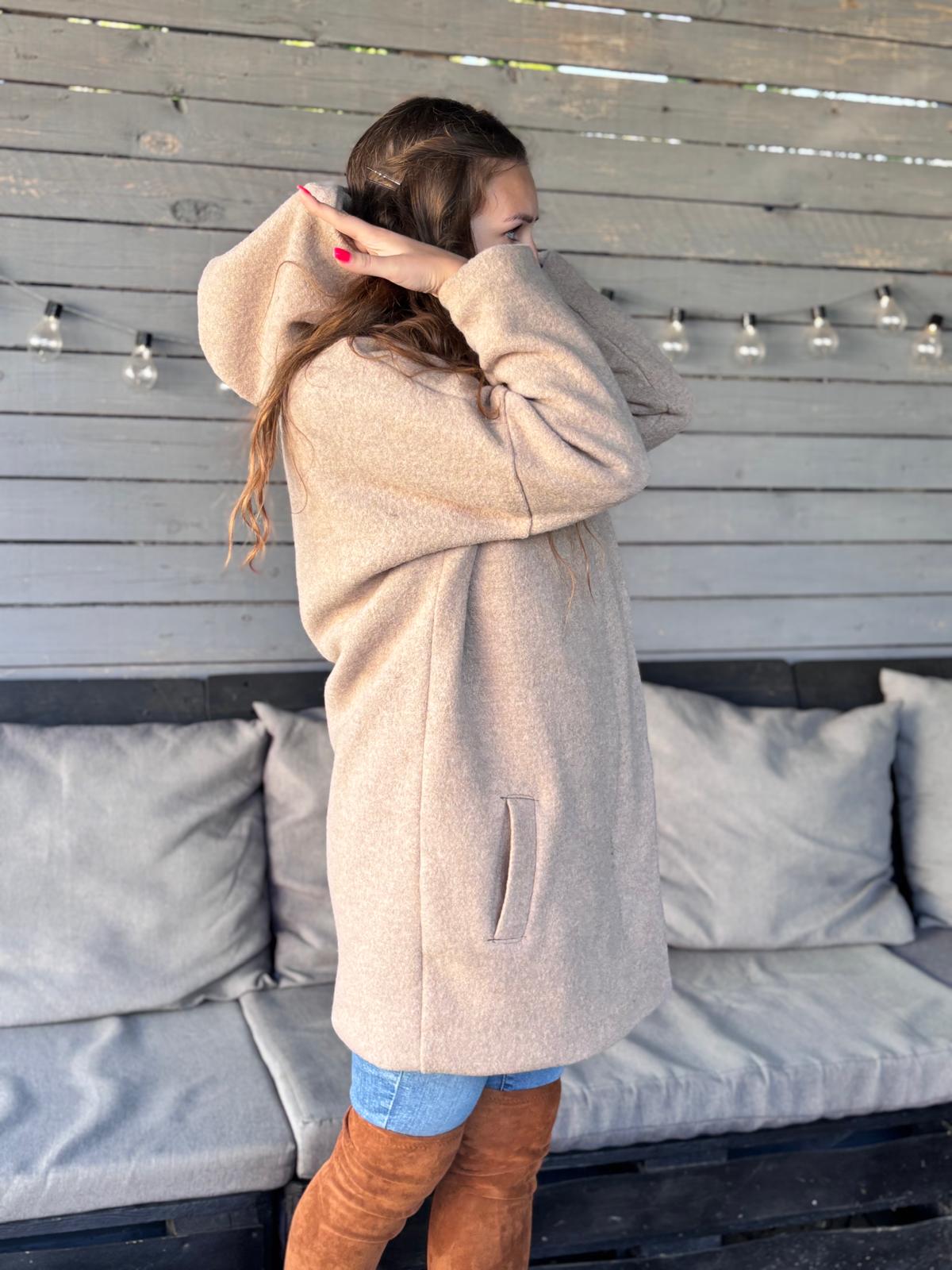Naturalny damski płaszcz 38 kaptur 100% wełna parzona wool merino