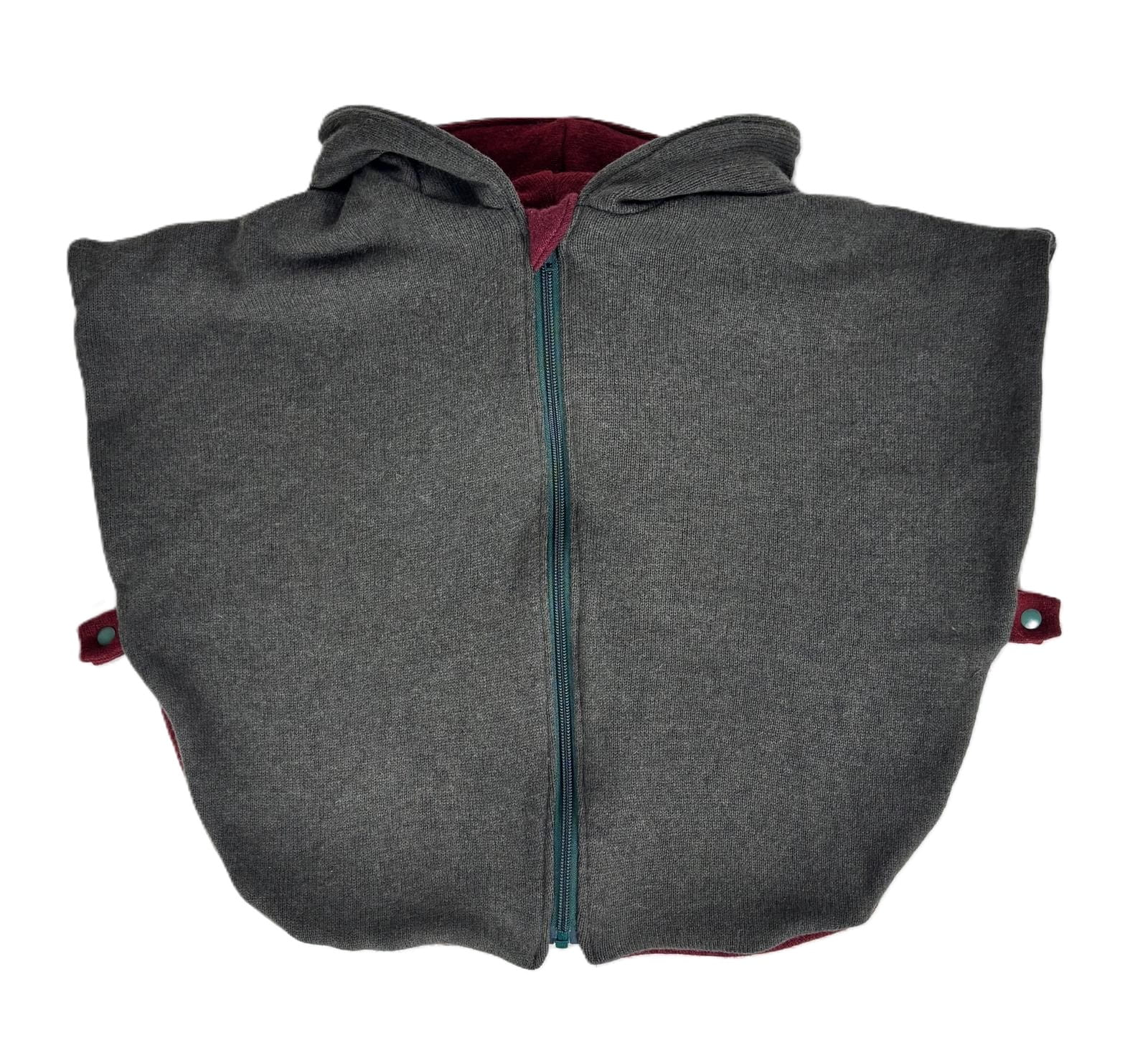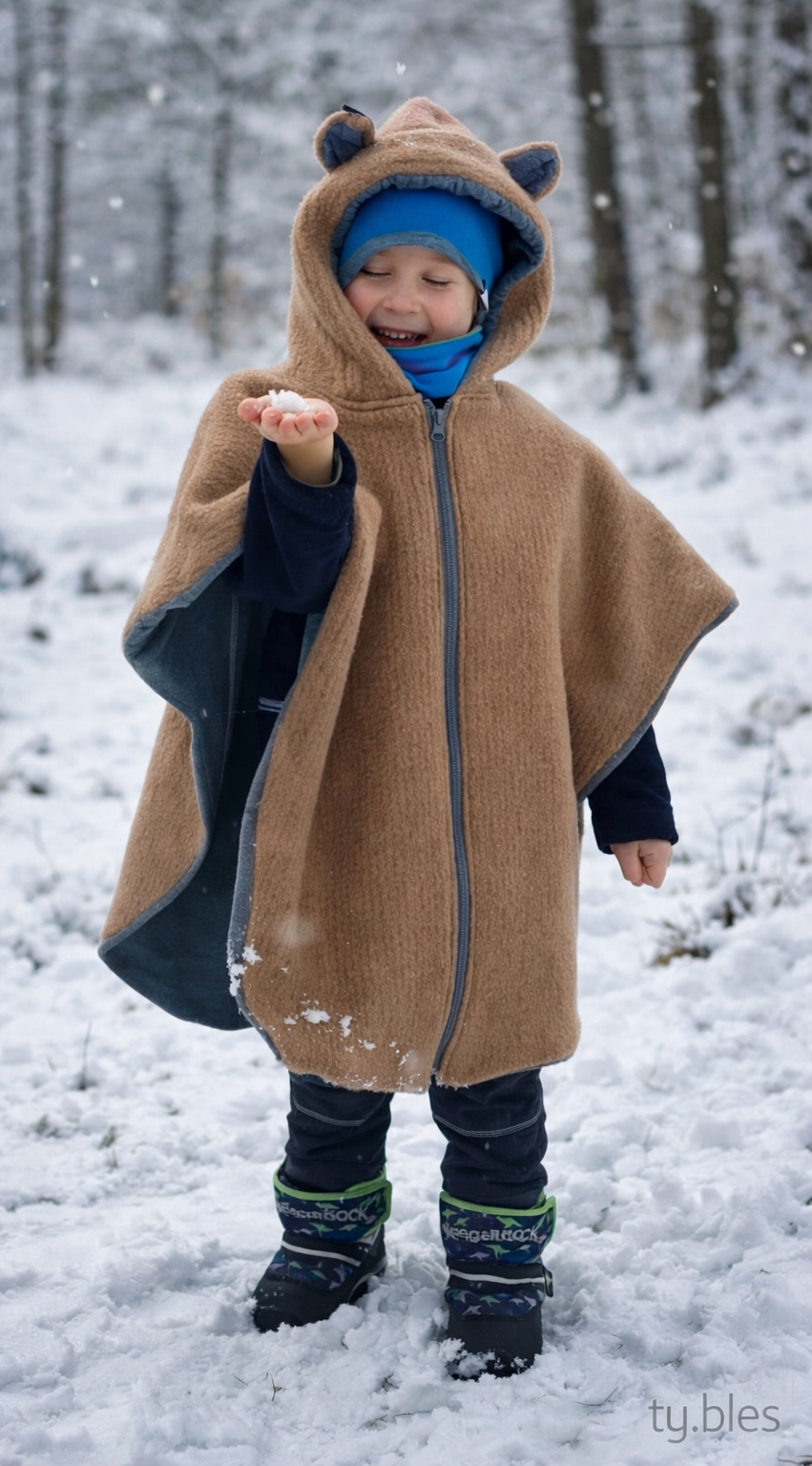 Wyjątkowe dwuwarstwowe ponczo samochodowe dla dzieci w wieku 1-3 lat, uszyte w duchu zero waste z używanych swetrów, które zapewnia idealne połączenie komfortu, ciepła i ekologicznego podejścia. Ponczo jest rozpinane na zamek, co ułatwia jego zakładanie, a napy z boku sprawiają, że ponczo dokładnie otula dziecko, chroniąc je przed chłodem. Sprawdzi się zarówno podczas jazdy samochodem, jak i w codziennym użytkowaniu.