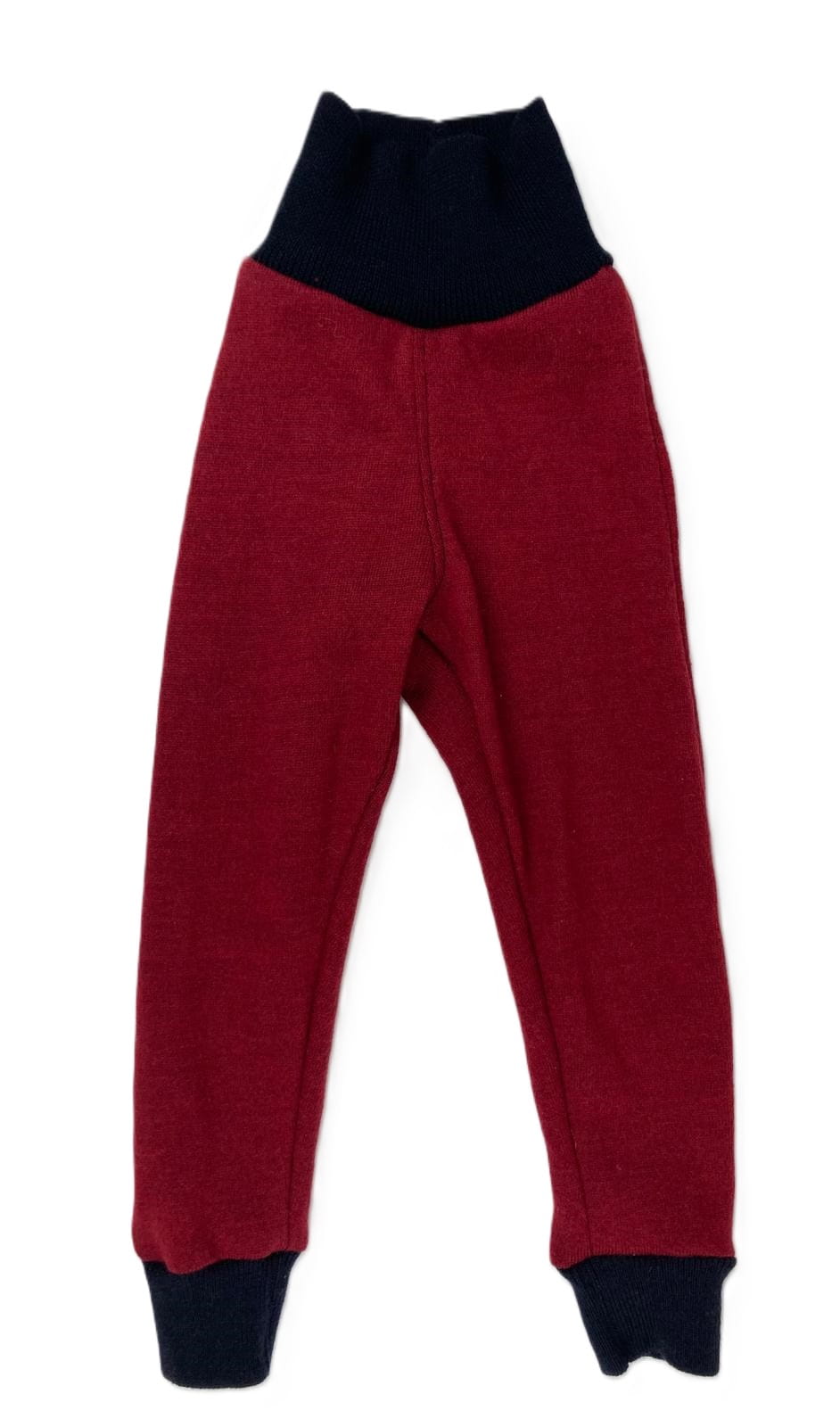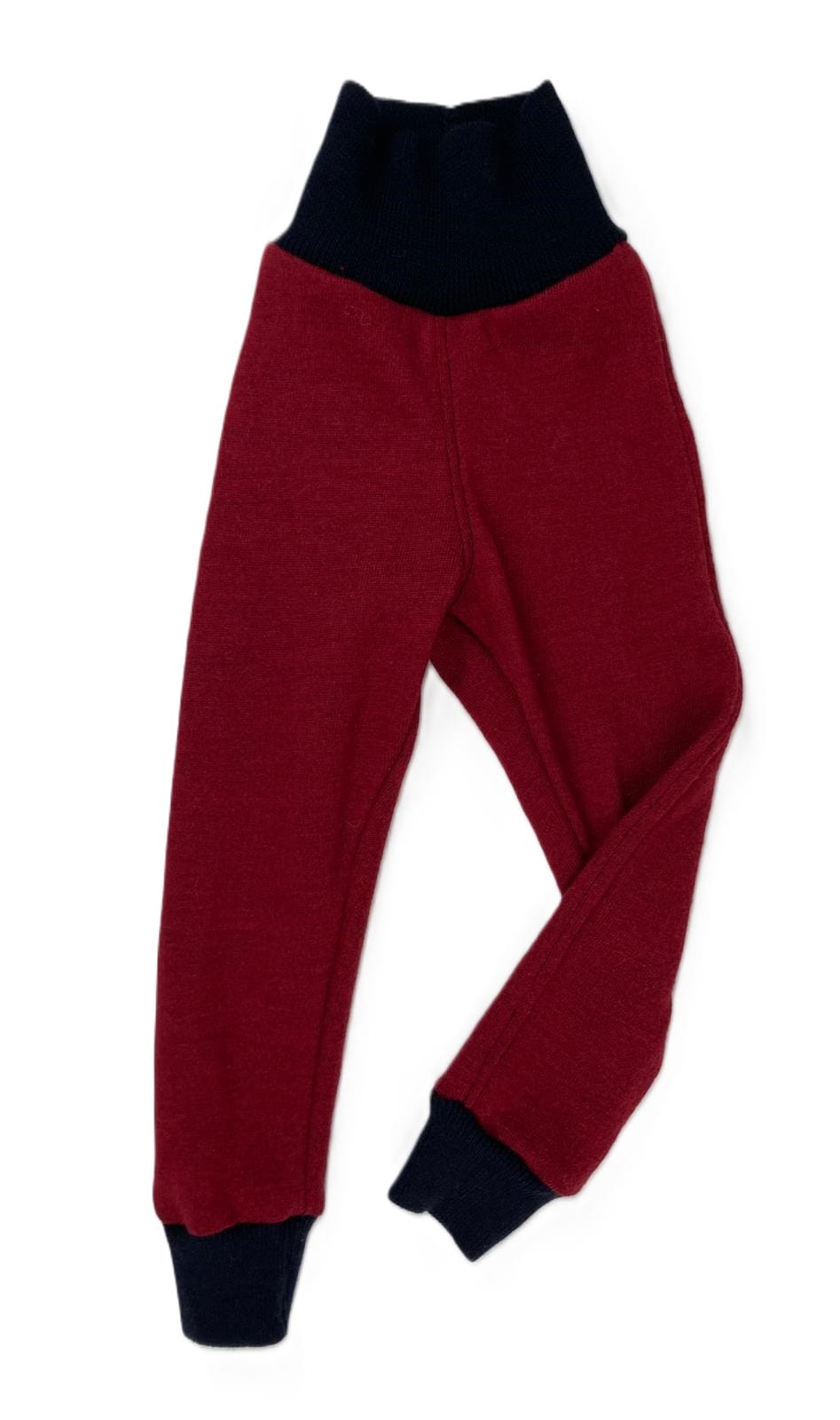 Czerwone spodnie dziecięce uszyte w duchu zero waste z używanych swetrów 100% wełna, starannie pranych przed szyciem. To idealny wybór na chłodniejsze dni, który łączy ekologiczne podejście z najwyższą jakością. Spodnie po bokach nogawek mają przeszycia.