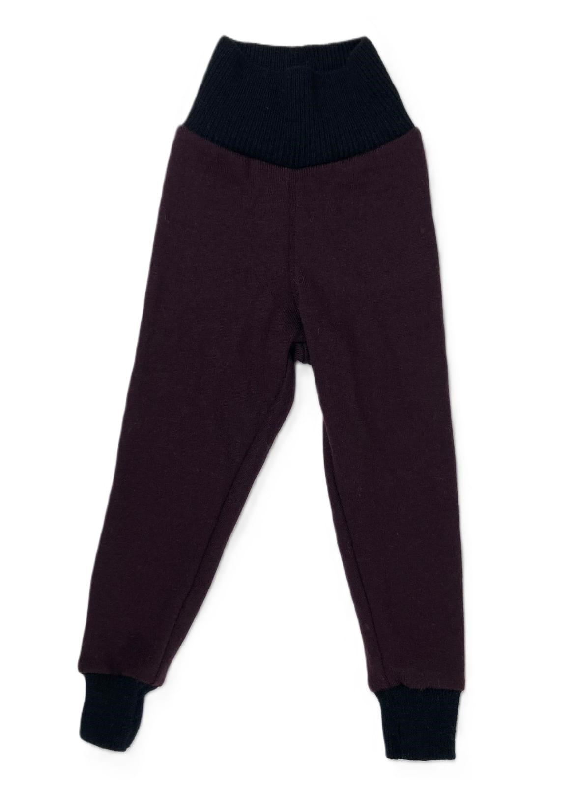 Bordowe spodnie dziecięce uszyte w duchu zero waste z używanych swetrów 100% wełna, starannie pranych przed szyciem. To idealny wybór na chłodniejsze dni, który łączy ekologiczne podejście z najwyższą jakością.