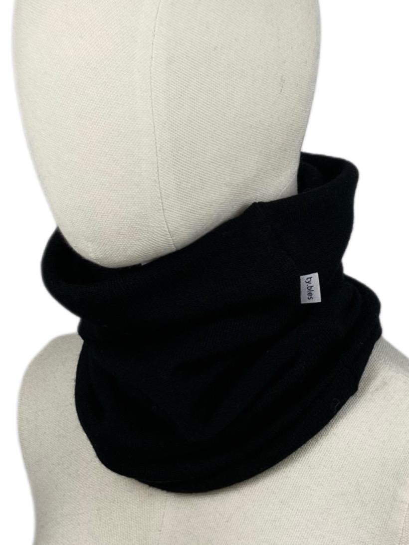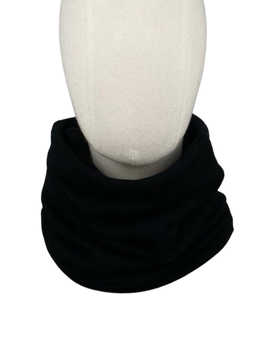 Wełniany golf–komin w kolorze czarnym, wykonany z najwyższej jakości 100% naturalnej wełny. Produkt odpowiedni zarówno dla dzieci, jak i dorosłych (rozmiar one size), co czyni go niezwykle uniwersalnym i praktycznym wyborem na chłodniejsze dni.