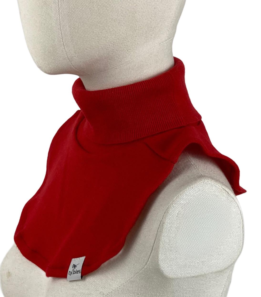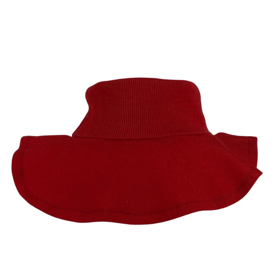 Ciepły, wygodny wełniany golf-komin w kolorze czerwonym, uszyty ręcznie w małej polskiej pracowni marki ty.bles. Powstał w duchu zero waste z najwyższej jakości 100% naturalnej wełny, pochodzącej z pranych i selekcjonowanych używanych swetrów.