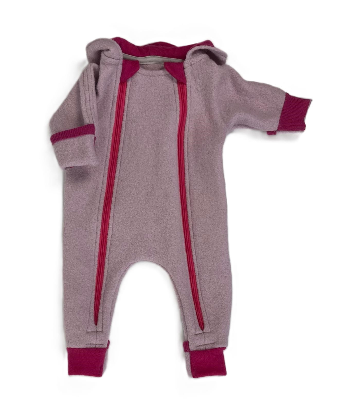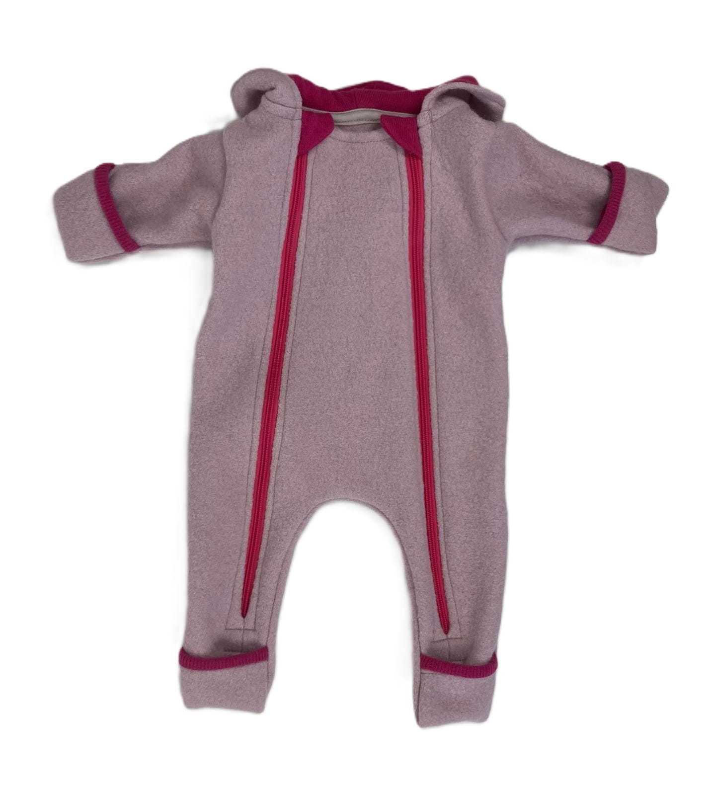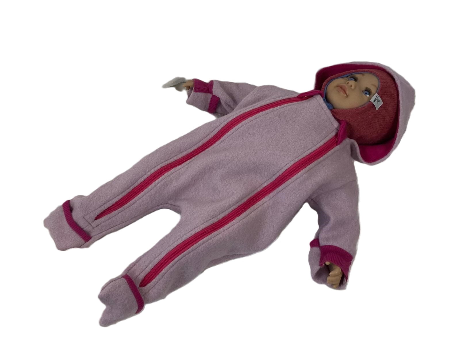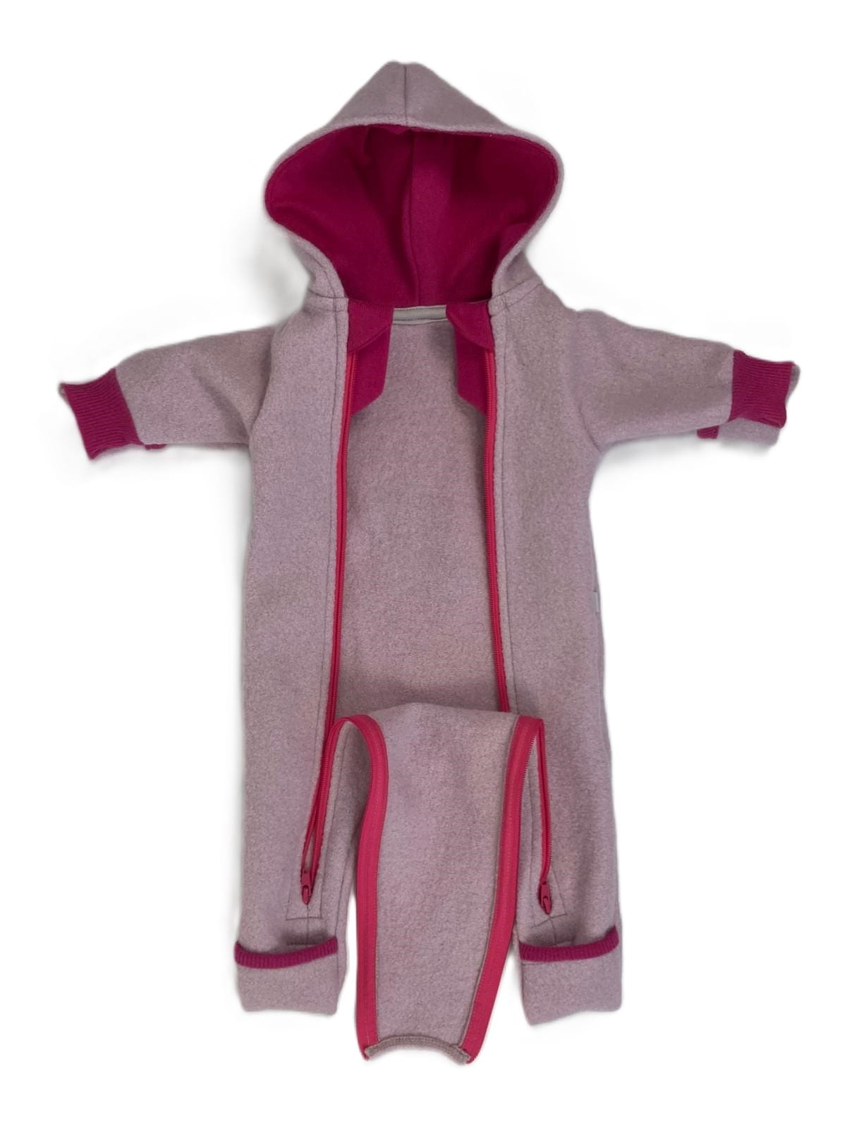 Jednowarstwowy wełniany kombinezon dziecięcy w rozmiarze 62/68 cm, wykonany z najwyższej jakości wełny parzonej, idealny na każdą porę roku. Kombinezon w kolorze różowym, z praktycznym kapturem podszytym wełną, to doskonały wybór dla maluszków, zapewniający ciepło i wygodę podczas codziennych spacerów oraz zabaw na świeżym powietrzu.